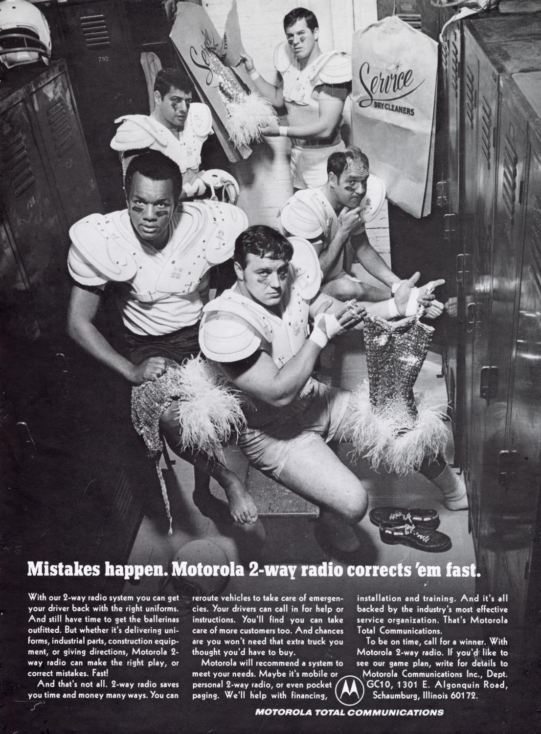 Print advertisement created by photographer Howard LeVant/LeVant Photography (other contributors unknown) for Motorola. Date of advertisement is unknown. Date range listed (1969-1978) is approximate. Title supplied by Howard LeVant.