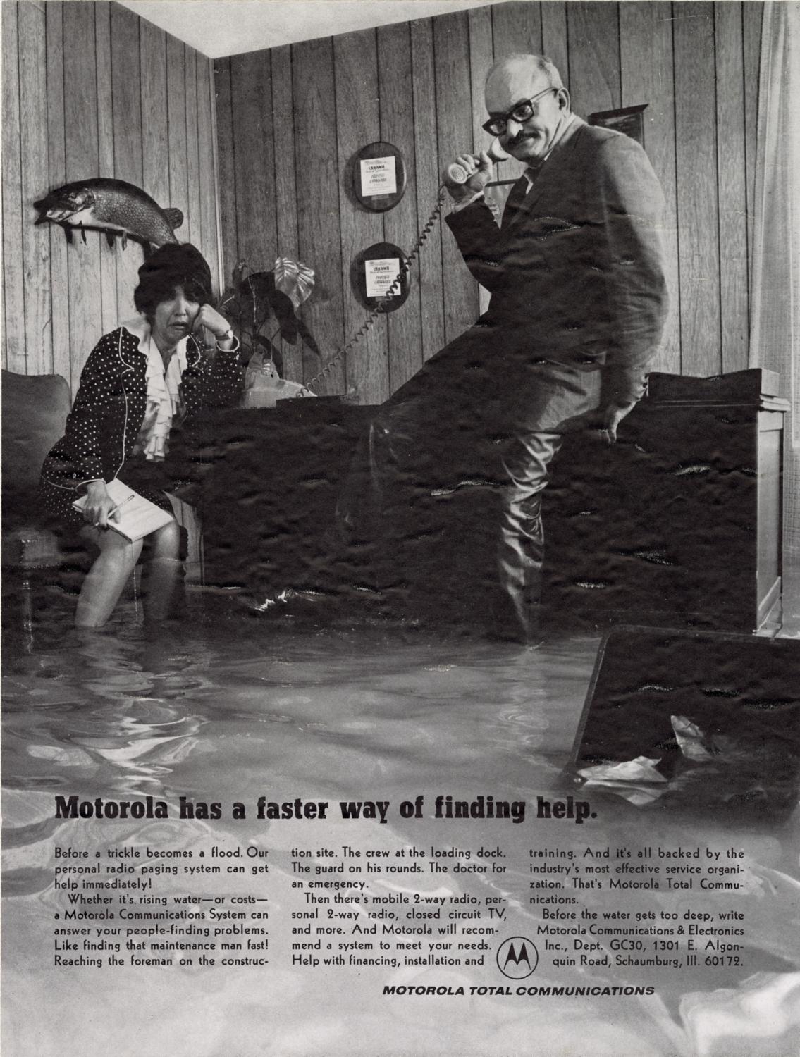 Print advertisement created by photographer Howard LeVant/LeVant Photography and Brand for Motorola. Date of advertisement is unknown. Date range listed (1969-1978) is approximate. Title supplied by Howard LeVant.