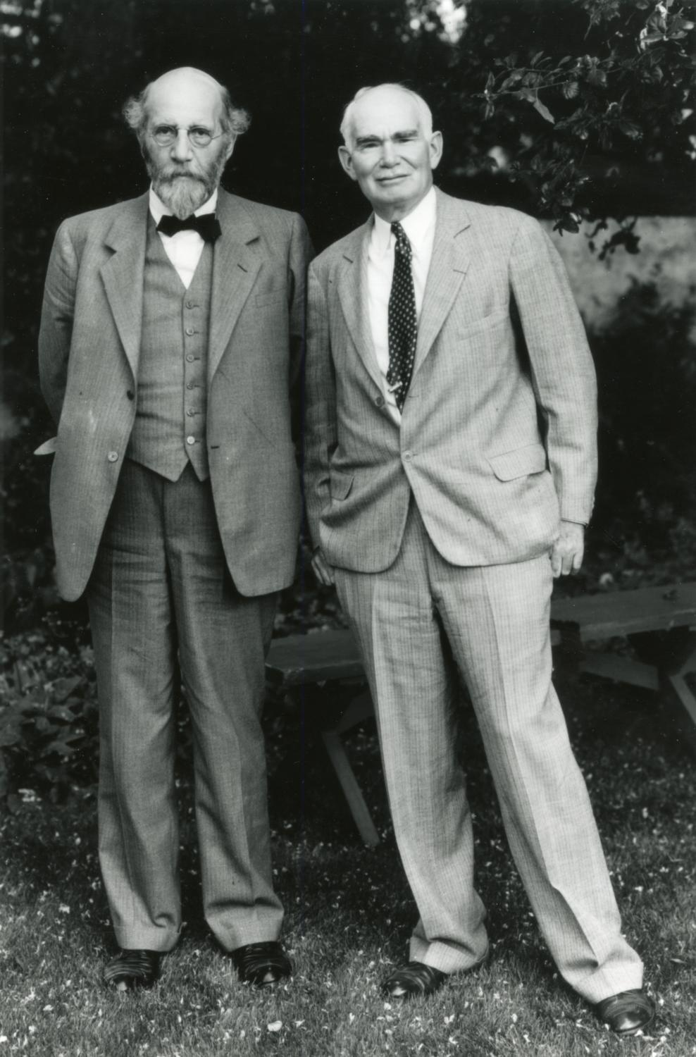 Photography of Edwin Lewis (left) and Lee de Forest (right). Lewis was a faculty member at the Lewis Institute and held various administrative posts. De Forest, a pioneer of wireless communication, served as a faculty member at Lewis Institute during the turn of the twentieth century. During that... Show morePhotography of Edwin Lewis (left) and Lee de Forest (right). Lewis was a faculty member at the Lewis Institute and held various administrative posts. De Forest, a pioneer of wireless communication, served as a faculty member at Lewis Institute during the turn of the twentieth century. During that time he conducted his first long-distance broadcasts from the roof of Main Building at the Armour Institute of Technology. De Forest also invented of the Audion three-element vacuum tube and patented a method of recording sound on film that the movie industry would later adopt. Photographer uknown. Show less