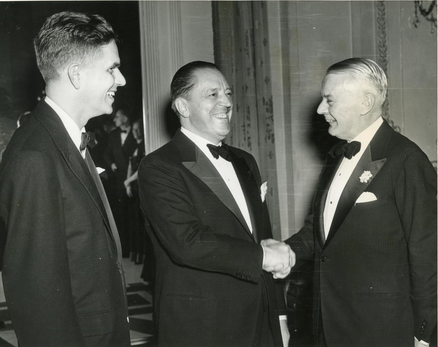 Henry Heald, Ludwig Mies van der Rohe, and James Cunningham at Mies' appointment dinner, Chicago, Illinois, 1938