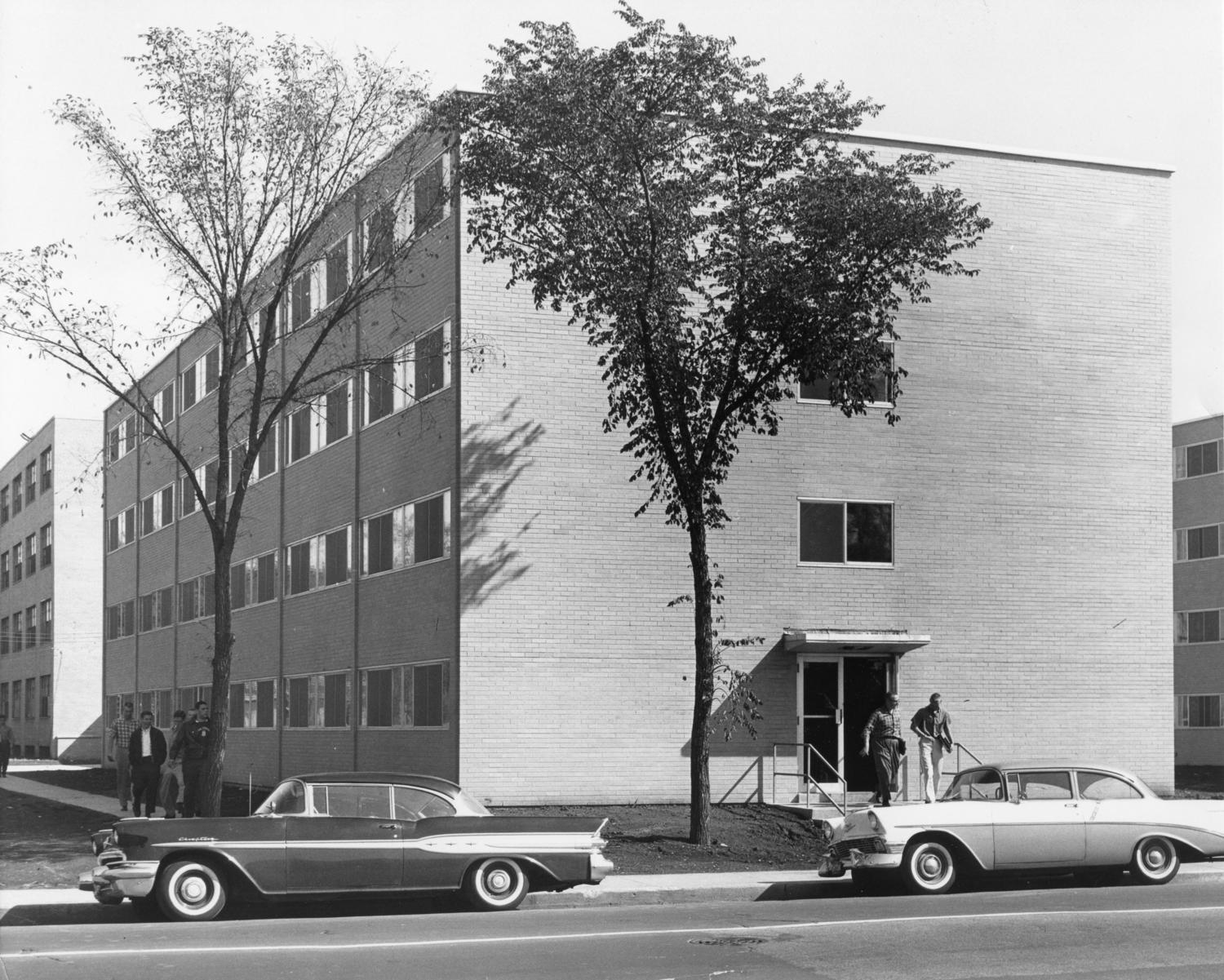 Photograph of North Hall, located at 71 East 32nd Street, Chicago, Ill. The building was designed by Mittelbusher & Tourtelot, and was constructed in 1959. Date of photograph is unknown. Date range... Show morePhotograph of North Hall, located at 71 East 32nd Street, Chicago, Ill. The building was designed by Mittelbusher & Tourtelot, and was constructed in 1959. Date of photograph is unknown. Date range listed is approximate. Show less