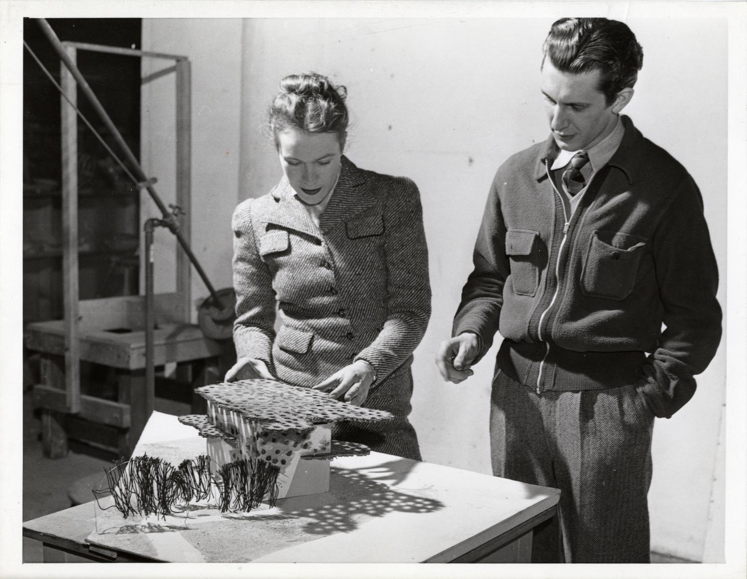 Students with model at the Institute of Design, Chicago, Illinois, ca. 1945