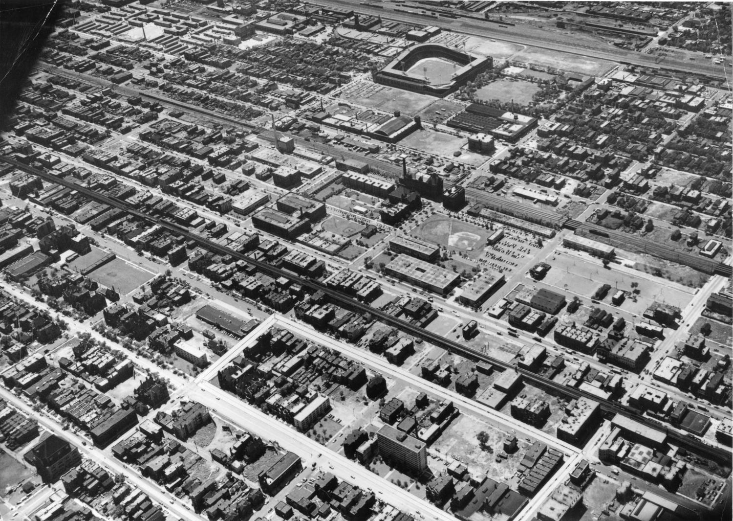 Aerial view of the Illinois Institute of Technology campus, Chicago, Illinois, 1950
