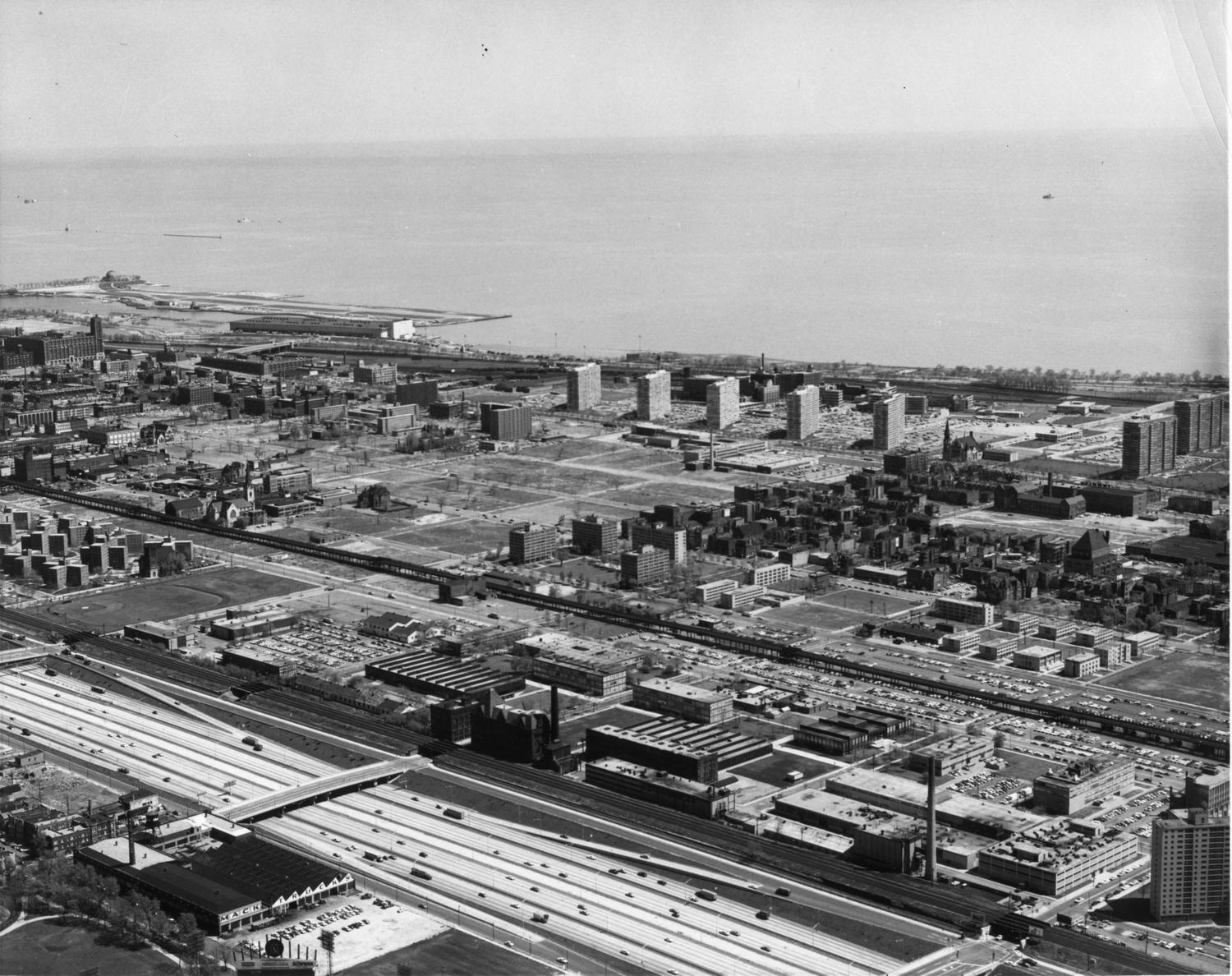 Aerial view of the Illinois Institute of Technology campus, Chicago, Illinois, 1963