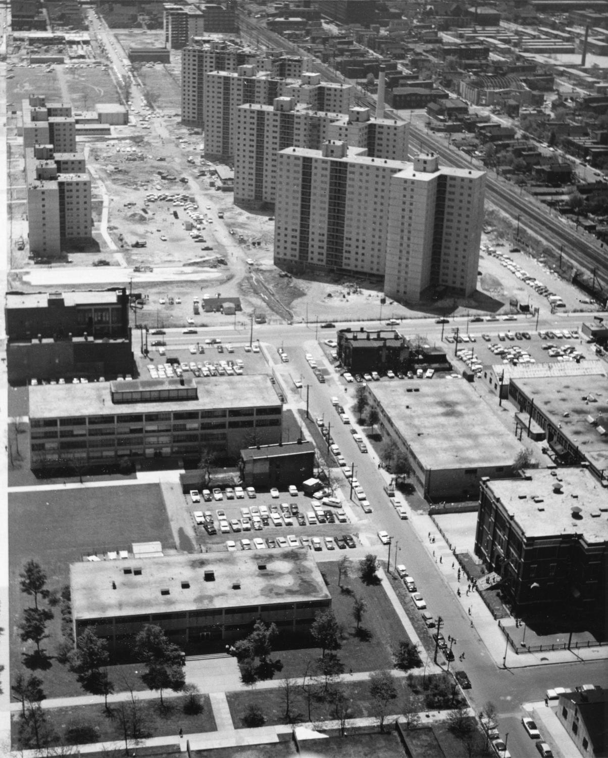 Aerial view of the Illinois Institute of Technology campus, Chicago, Illinois, 1957