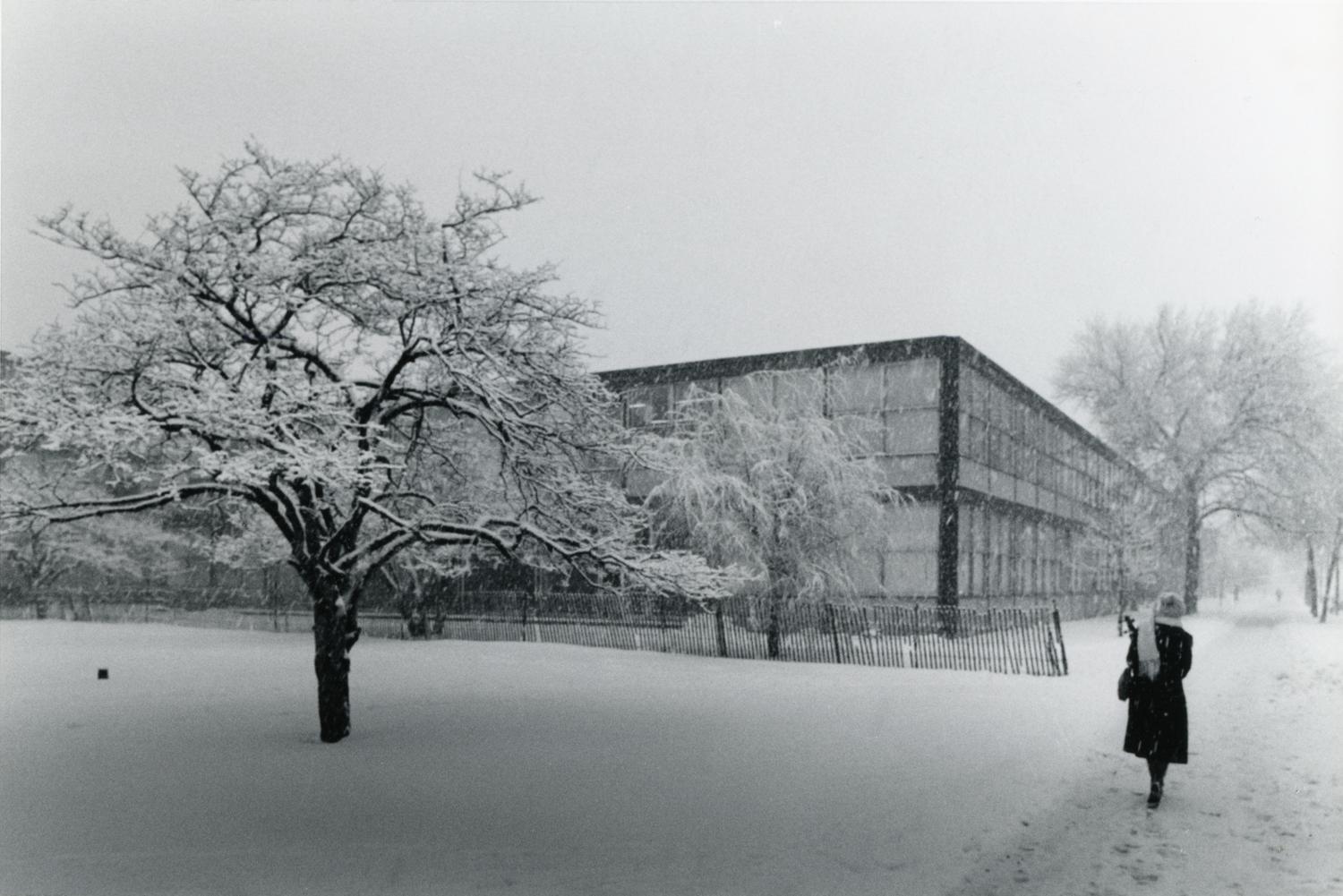 Snow on campus, Illinois Institute of Technology, Chicago, Illinois, 1980s