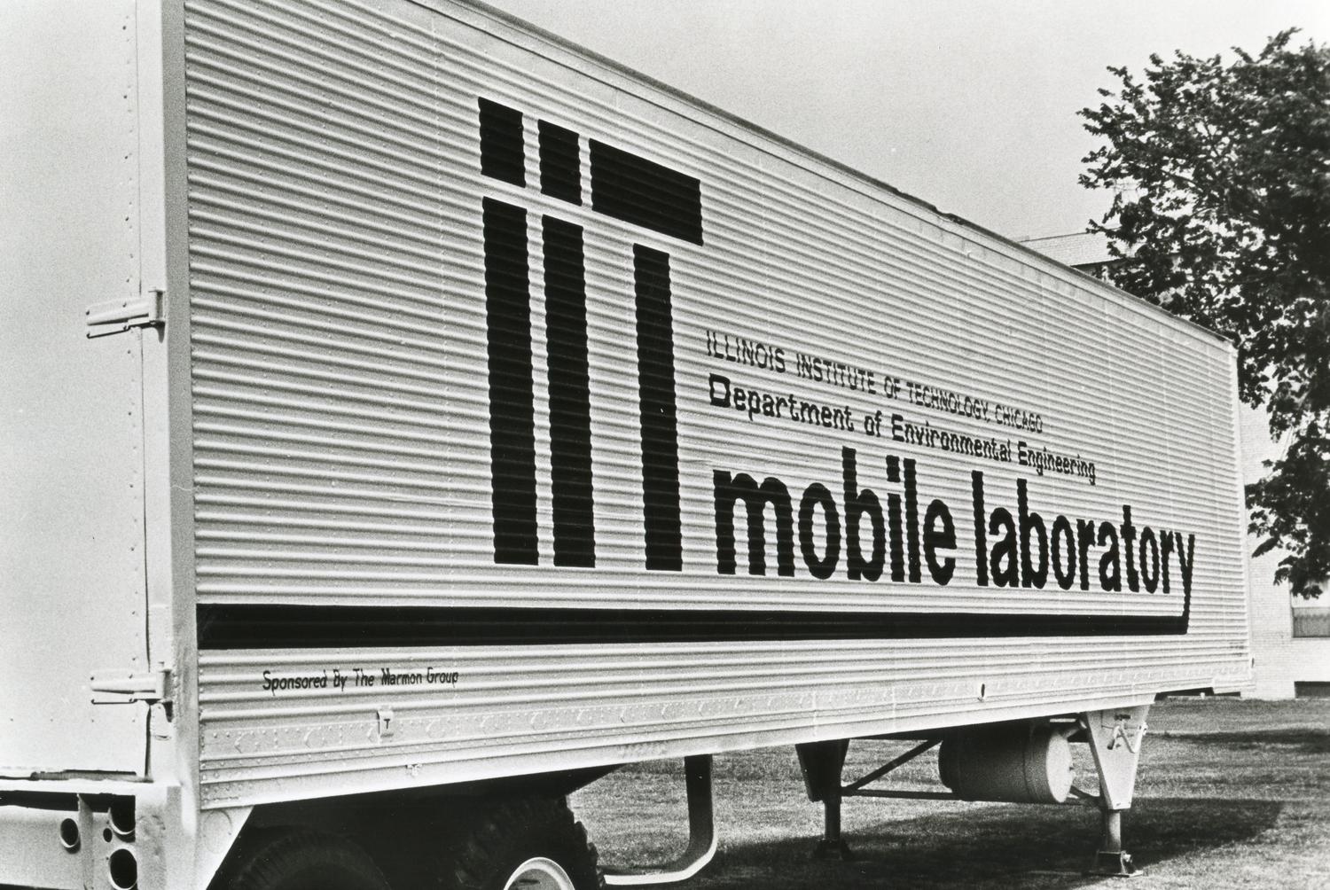 Photograph of the mobile environmental laboratory sponsored by the Marmon Group (of which Robert A. Pritzker was president). Illinois Tech faculty from the Department of Environmental Engineering used the mobile laboratory to test air and water conditions at Marmon Group plants. Photographer... Show morePhotograph of the mobile environmental laboratory sponsored by the Marmon Group (of which Robert A. Pritzker was president). Illinois Tech faculty from the Department of Environmental Engineering used the mobile laboratory to test air and water conditions at Marmon Group plants. Photographer unknown. Show less