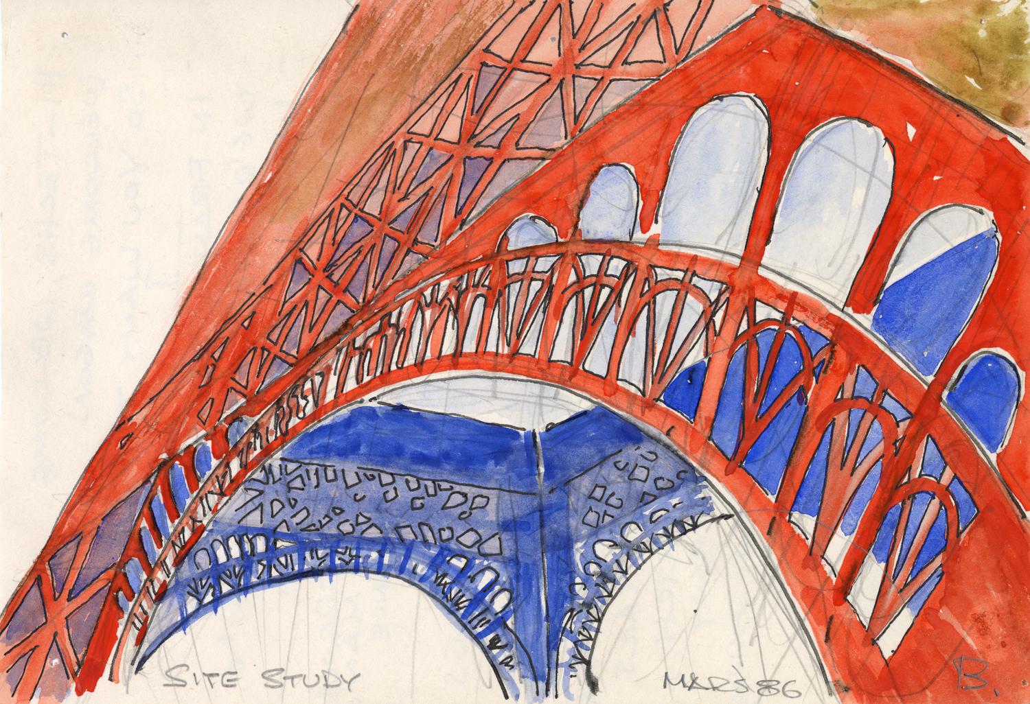 Color sketch of the Eiffel Tower.