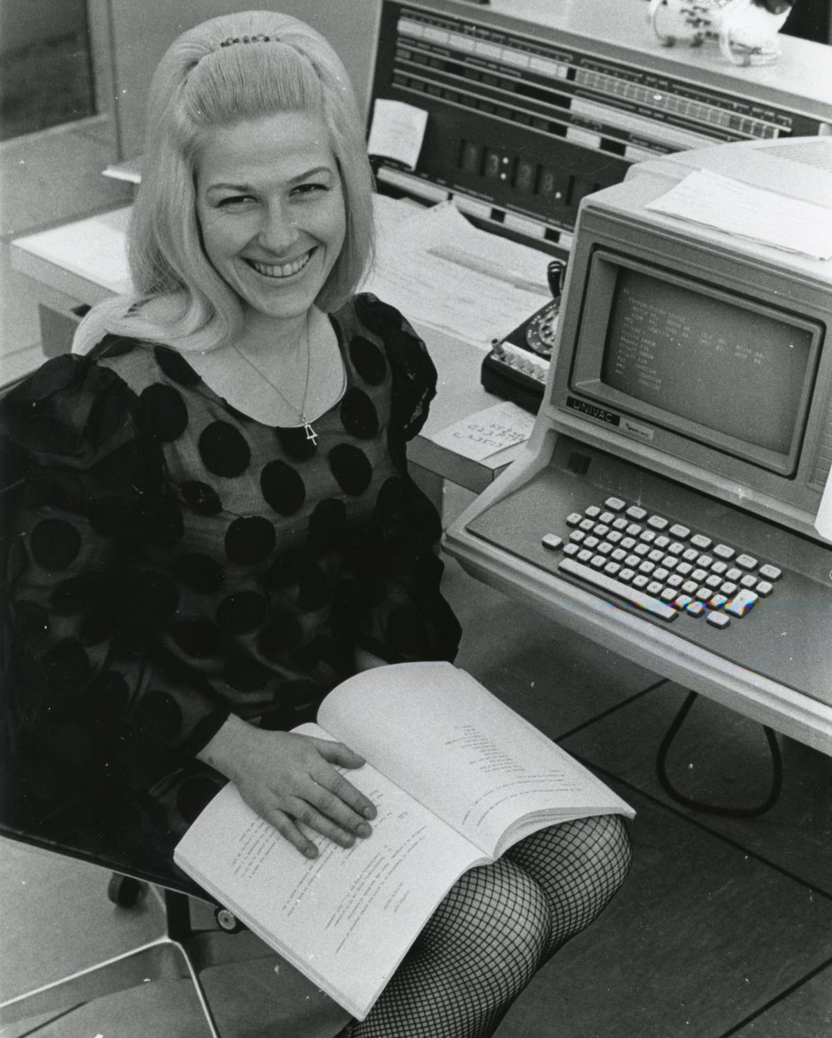 Woman with Univac computer, Illinois Institute of Technology, Chicago, Illinois, ca. 1970s