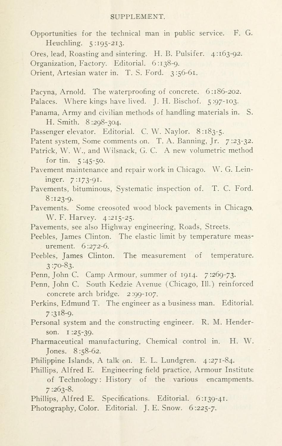 Armour Engineer, Index 1-8, 1909-1916