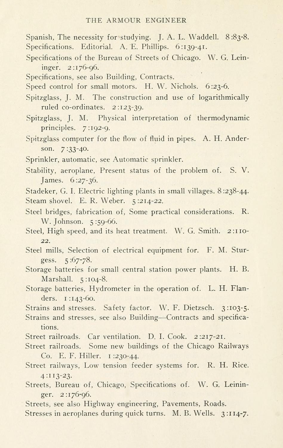 Armour Engineer, Index 1-8, 1909-1916