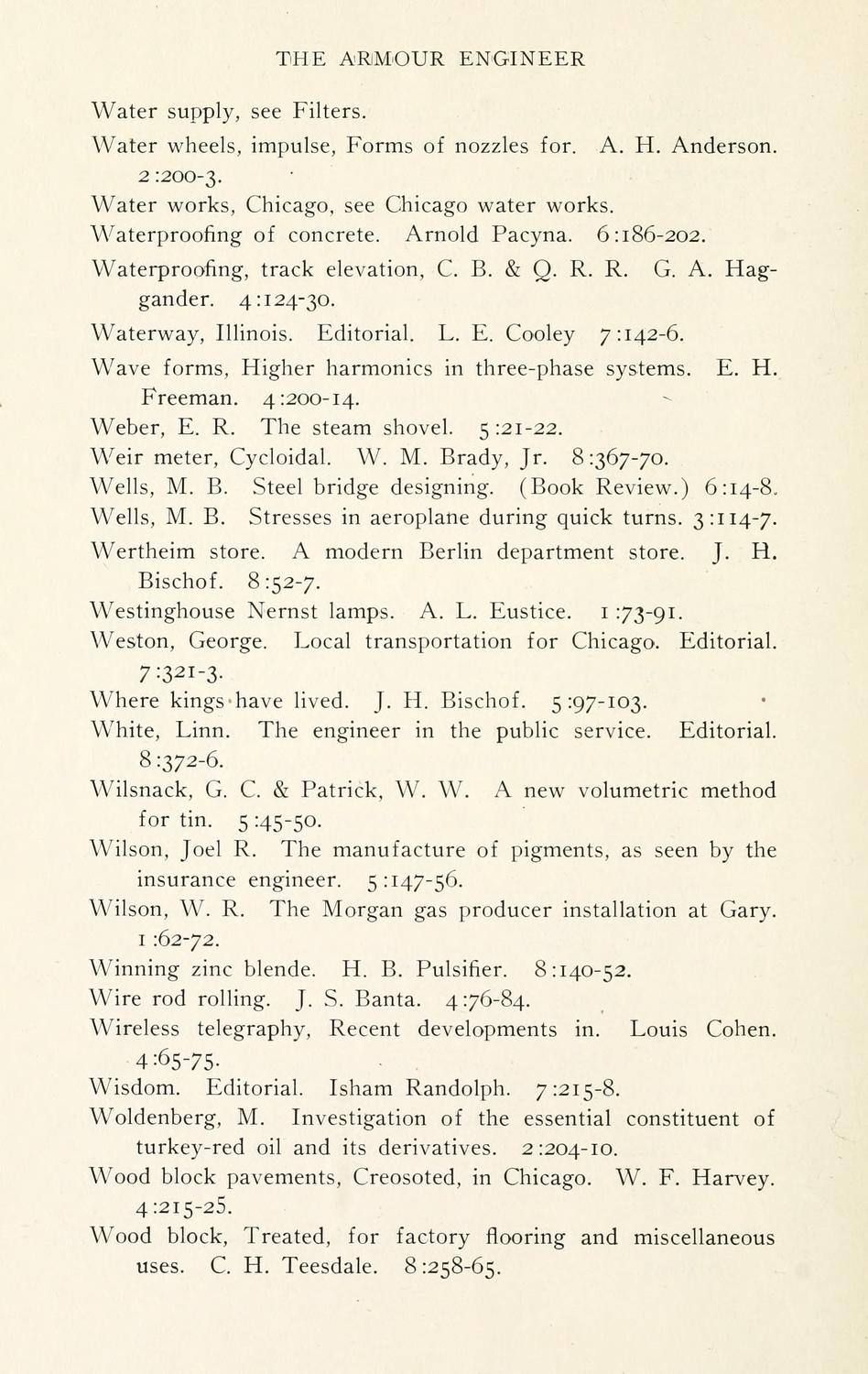 Armour Engineer, Index 1-8, 1909-1916