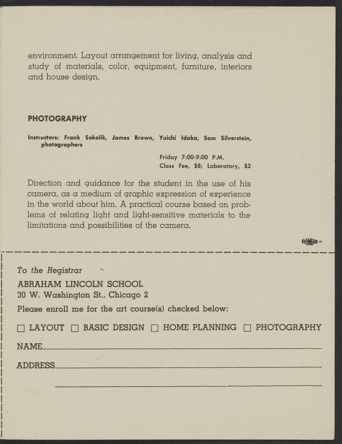 Abraham Lincoln School Art Classes leaflet, 1945-1946