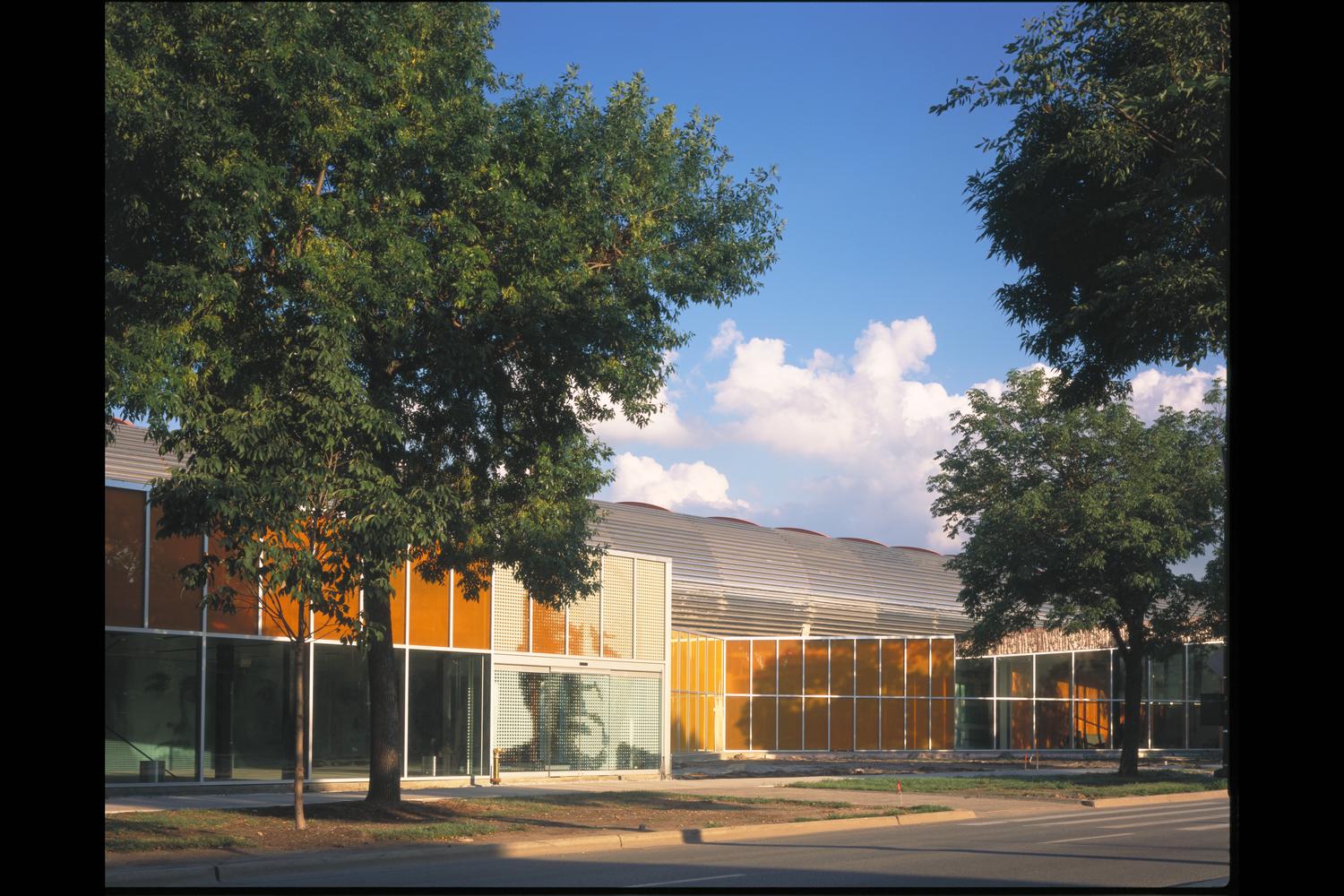 Photograph of the exterior of the McCormick Tribune Campus Center, Illinois Institute of Technology. The photograph depicts a portrait of Ludwig Mies van der Rohe created using the pictographic icon system designed for the building by graphic design firm 2x4. Photograph made available via... Show morePhotograph of the exterior of the McCormick Tribune Campus Center, Illinois Institute of Technology. The photograph depicts a portrait of Ludwig Mies van der Rohe created using the pictographic icon system designed for the building by graphic design firm 2x4. Photograph made available via Illinois Tech's institutional repository with the permission of Richard Barnes. Show less