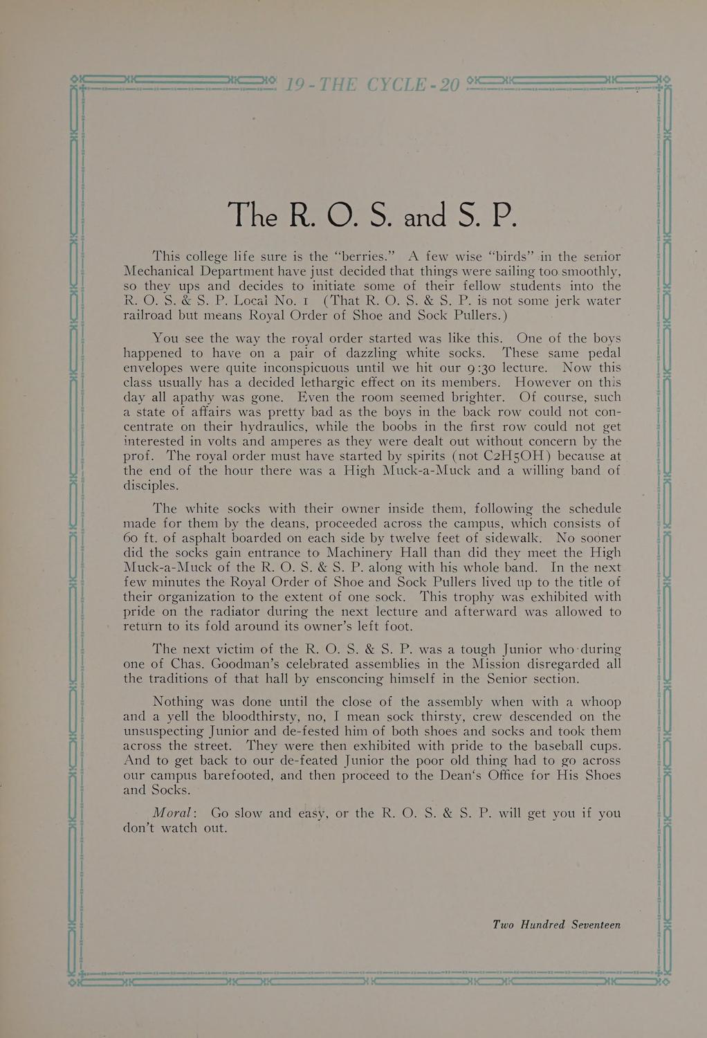 The Cycle, 1920
