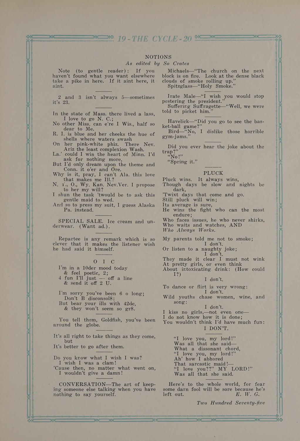 The Cycle, 1920