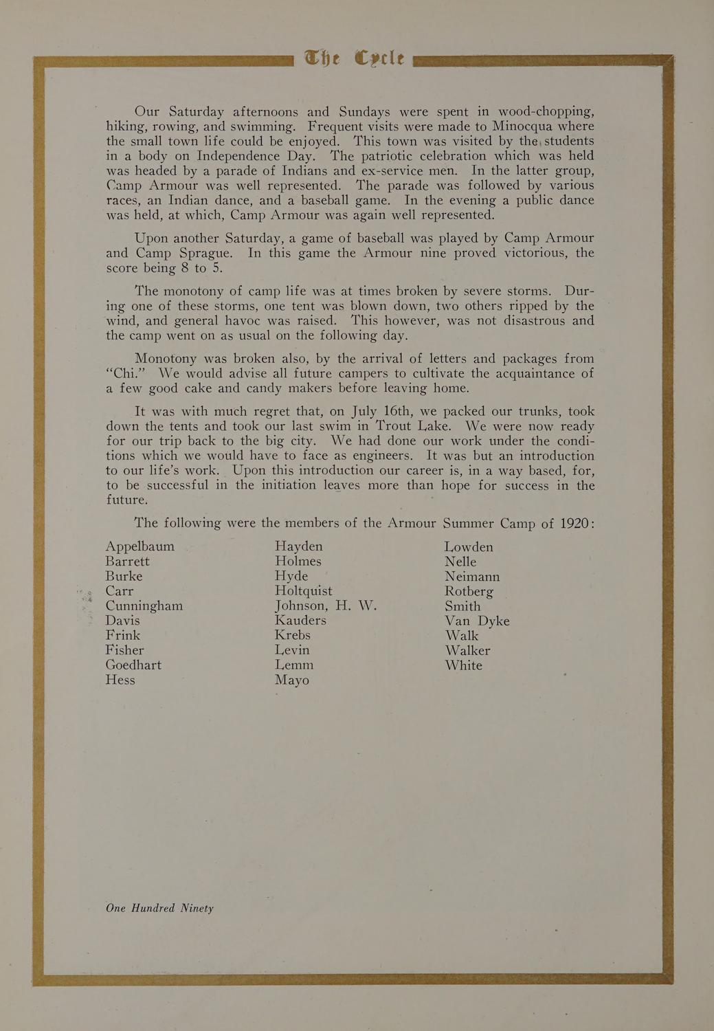 The Cycle, 1921