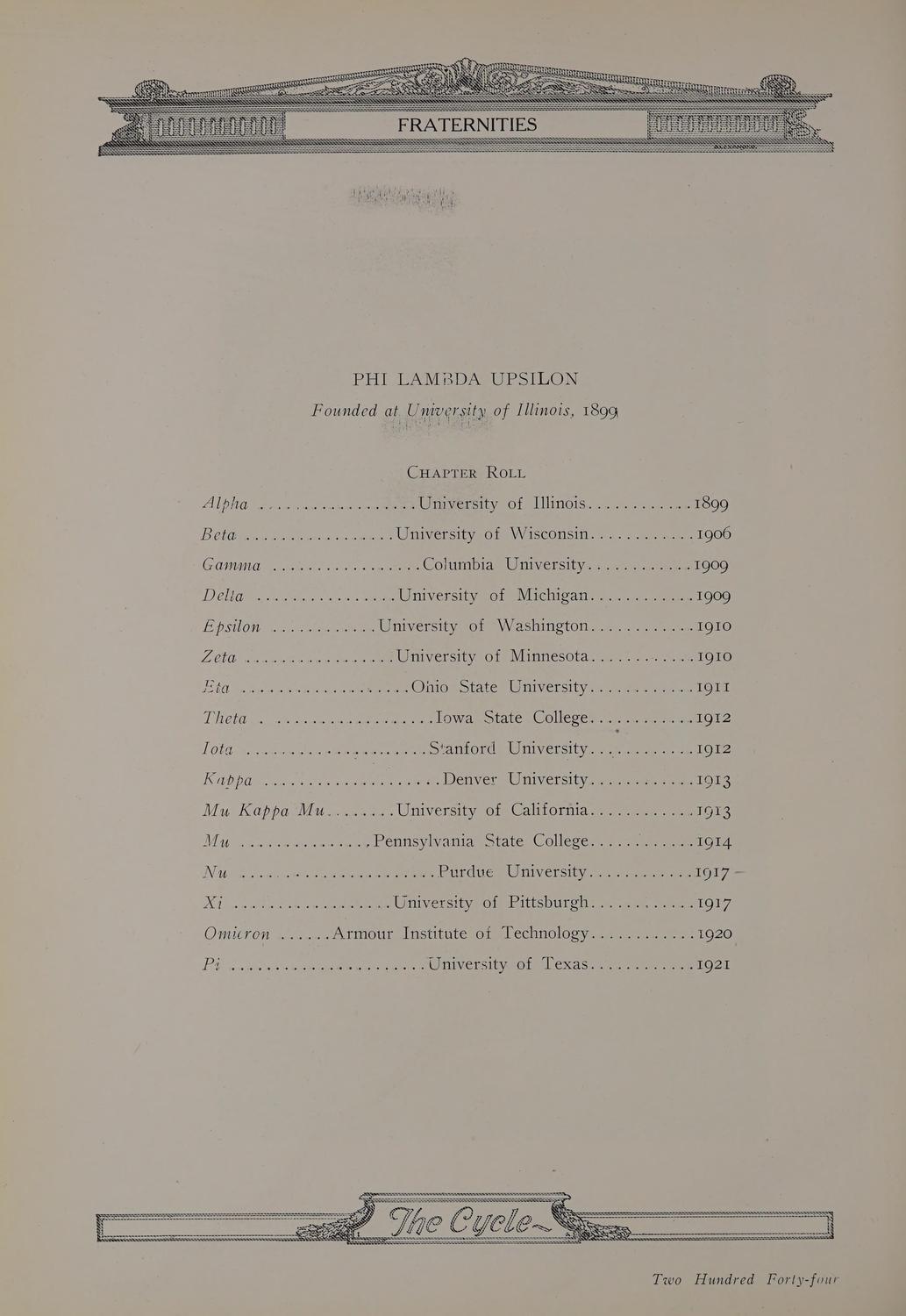 The Cycle, 1922