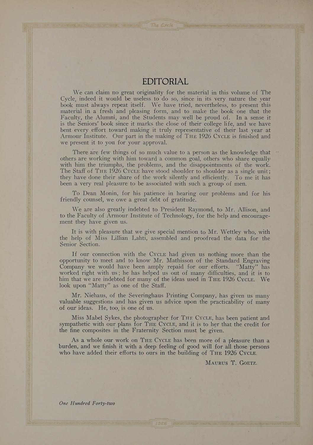 The Cycle, 1926