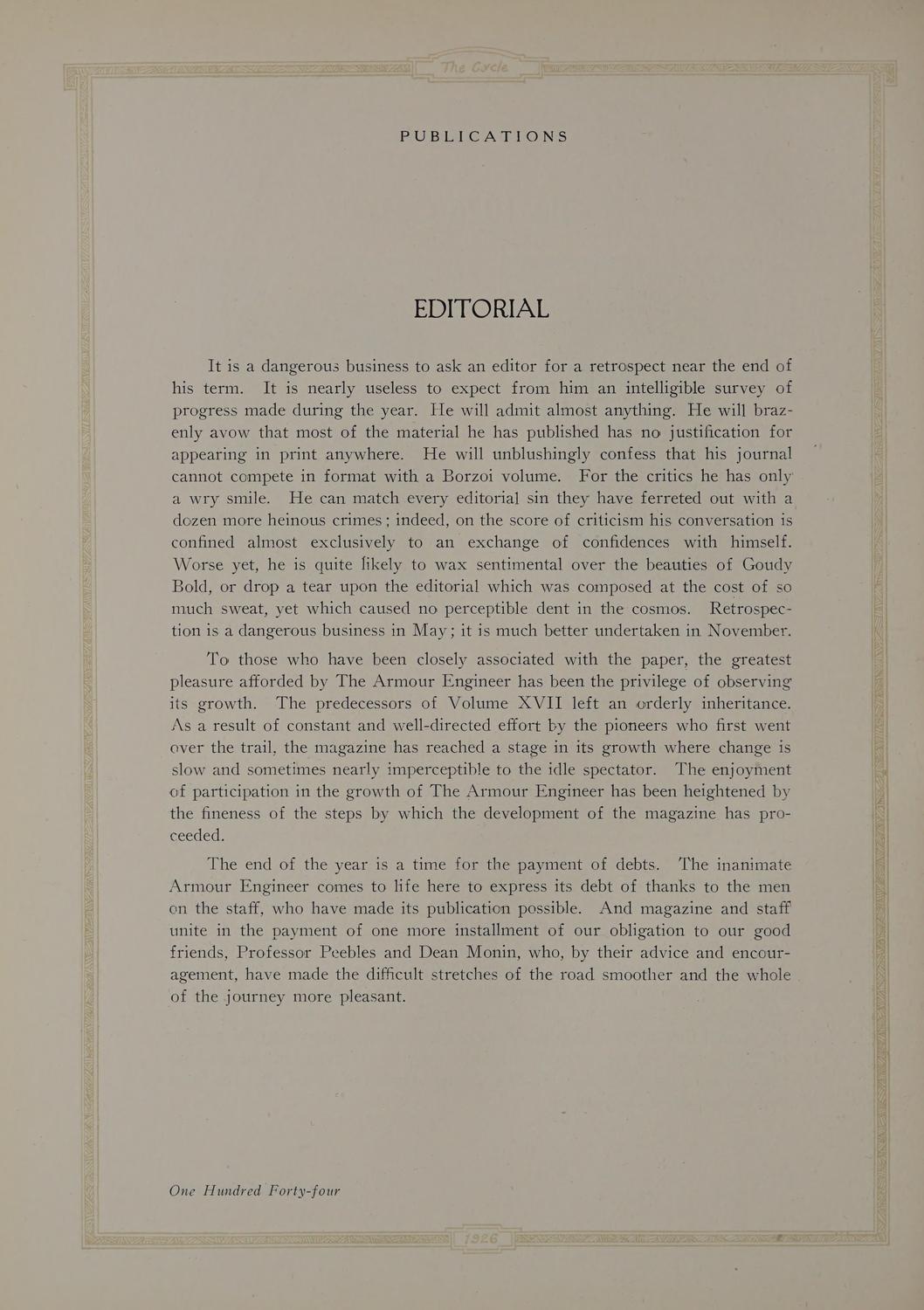 The Cycle, 1926