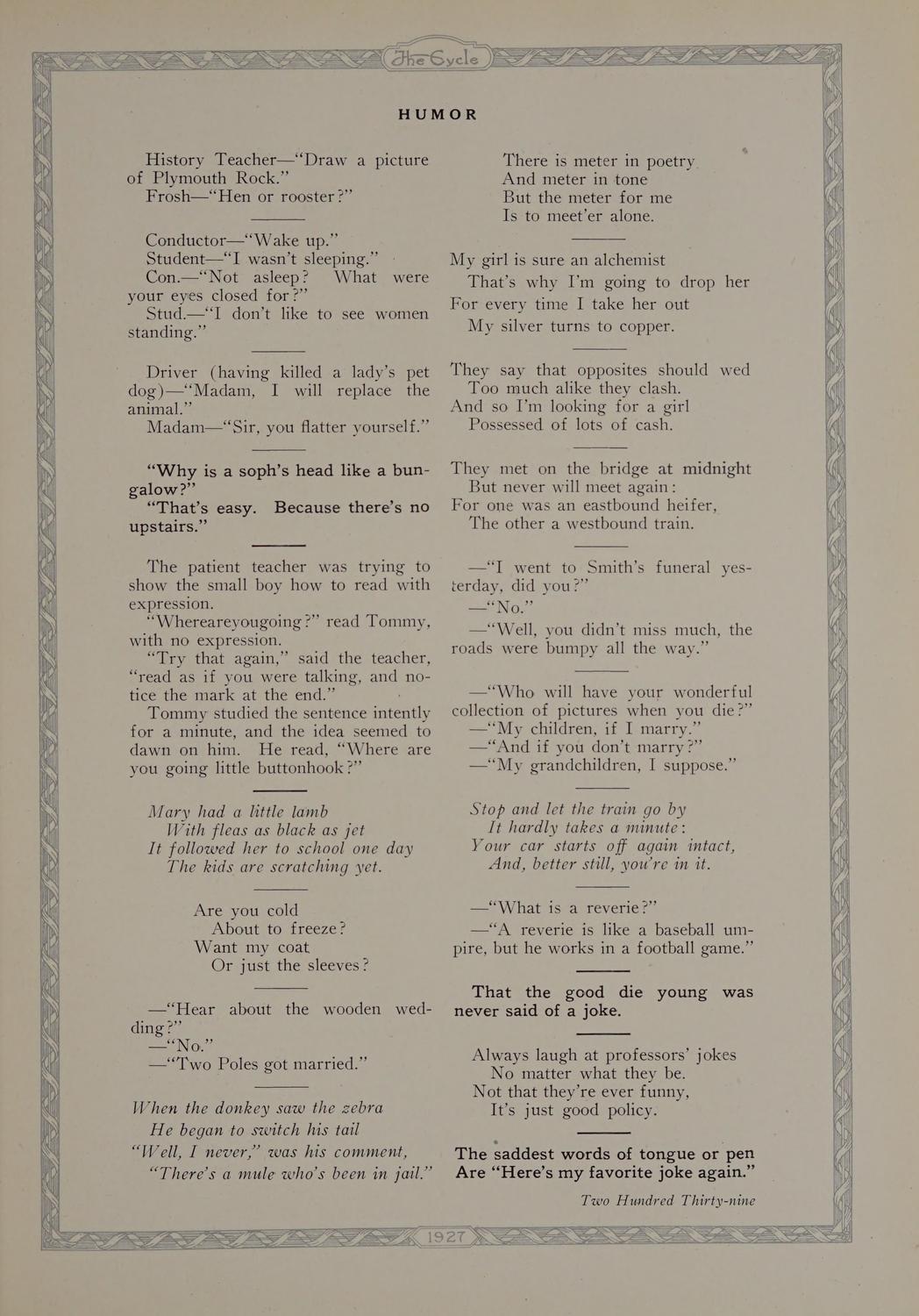 The Cycle, 1927