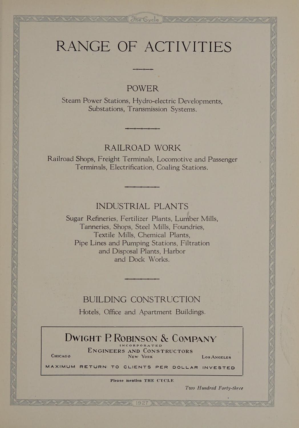 The Cycle, 1927