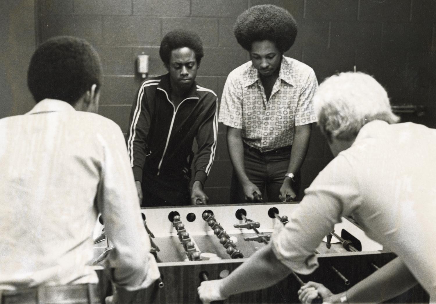 Foosball game, Illinois Institute of Technology, Chicago, Illinois, ca., 1972-1977