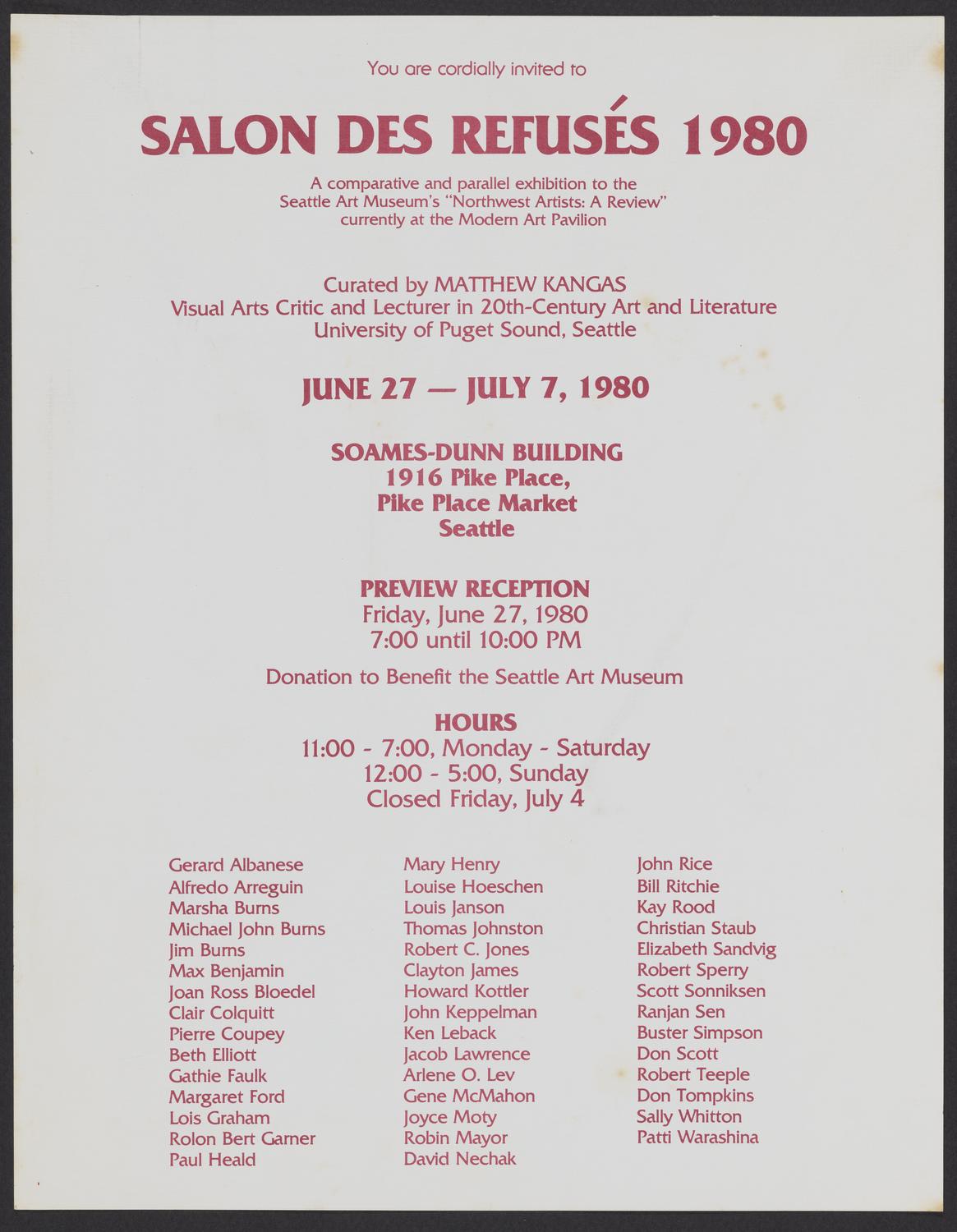Exhibition invitation: Salon des Refusés, Seattle, Washington, 1980