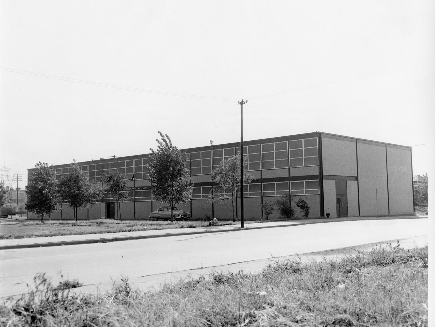 Photograph of Association of American Railroads Mechanical Engineering Building, as it was known in 1953-ca. 1993. The building became known as the Facilities Building of the Illinois Institute of Technology. The building was designed by Ludwig Mies van der Rohe, constructed in 1948-1953, and is... Show morePhotograph of Association of American Railroads Mechanical Engineering Building, as it was known in 1953-ca. 1993. The building became known as the Facilities Building of the Illinois Institute of Technology. The building was designed by Ludwig Mies van der Rohe, constructed in 1948-1953, and is located at 3100 South Federal Street. Date of photograph is unknown. Date range listed is approximate. Photographer unknown. Show less