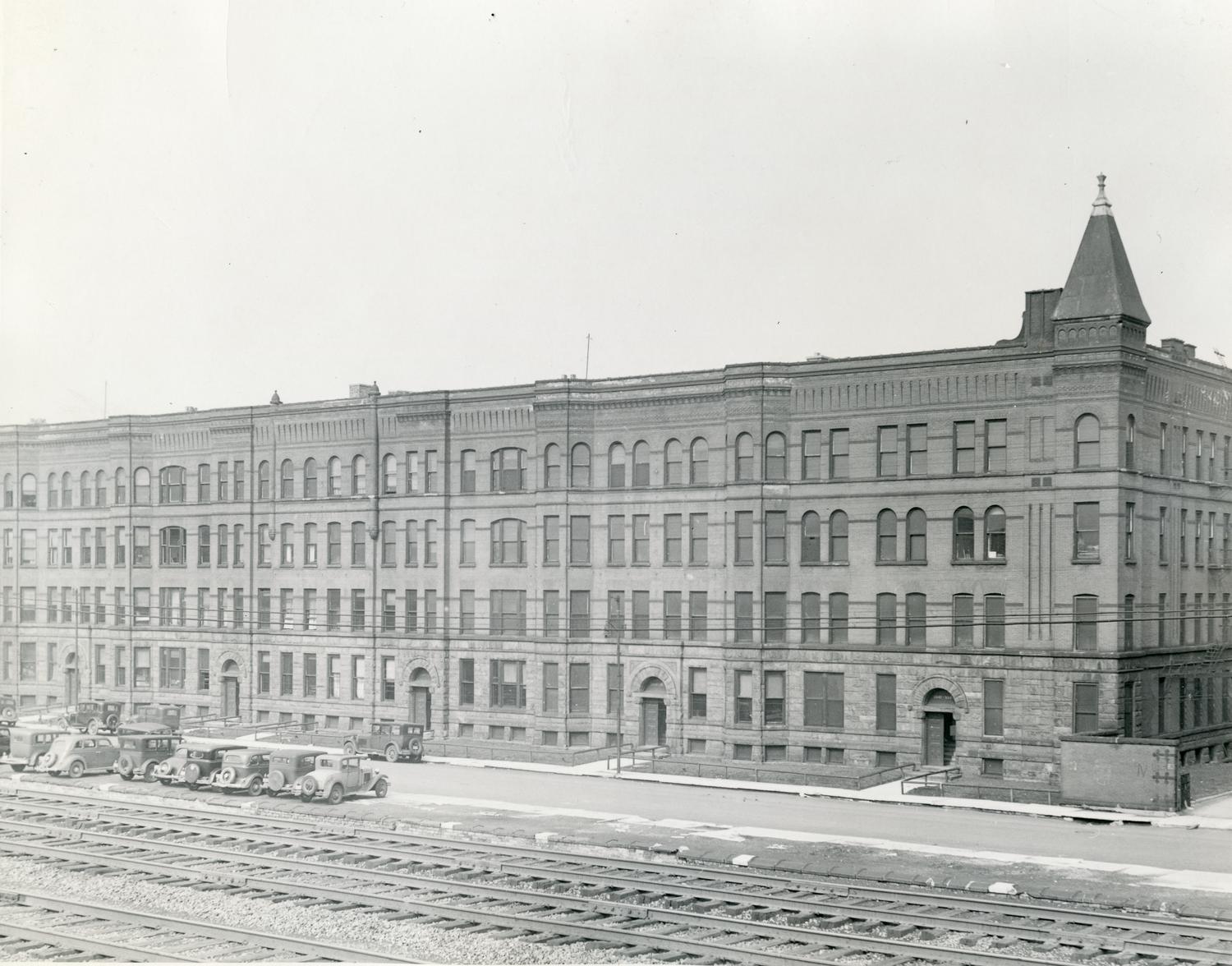 Photograph of Armour Flats, located at 3322 Armour Avenue (now Federal Street). Designed by the architecture firm Patton & Fisher, and constructed in 1886, Armour Flats was a 194-unit apartment... Show morePhotograph of Armour Flats, located at 3322 Armour Avenue (now Federal Street). Designed by the architecture firm Patton & Fisher, and constructed in 1886, Armour Flats was a 194-unit apartment building constructed to house Armour meatpacking company employees. It later provided living quarters for Armour Institute faculty. In 1907, six sections of the building were christened Chapin Hall for use by Armour Institute. When the majority of the building was torn down in 1917 and 1919, Chapin Hall remained. Chapin Hall and the Physics Building were demolished in 1968. Date of photograph is unknown. Date range listed is approximate. Photographer unknown. Show less