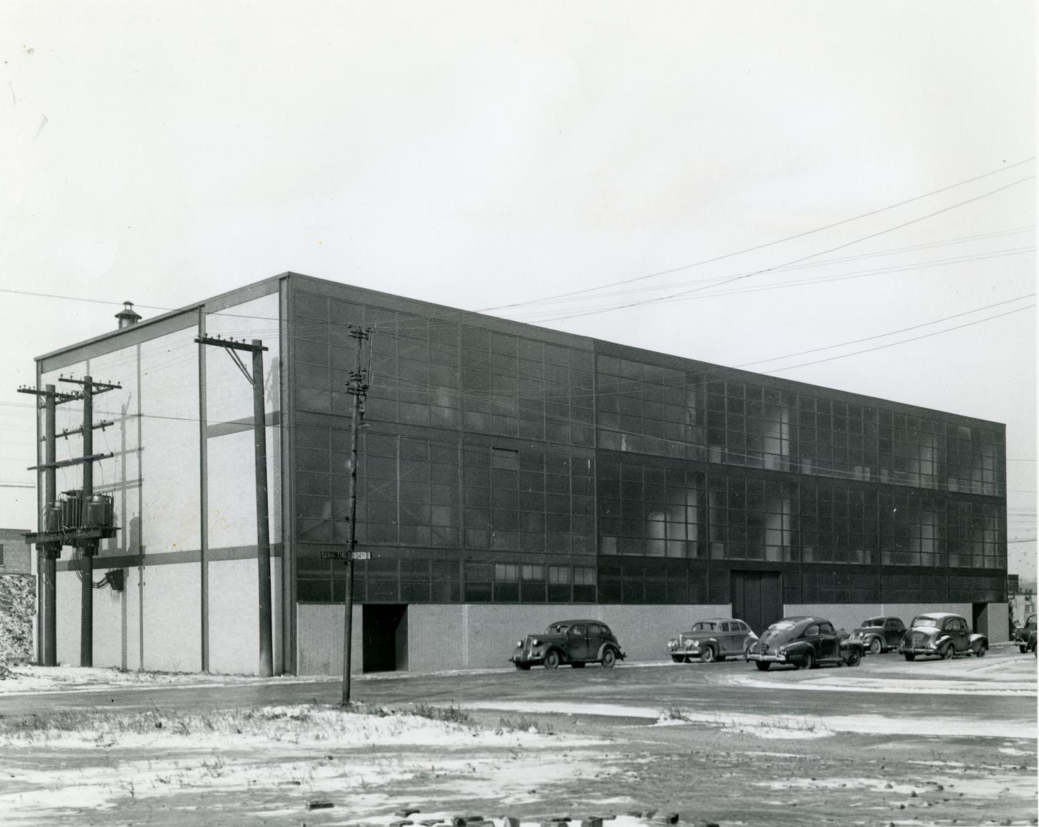 Photograph of the Materials and Metals Building, designed by Ludwig Mies van der Rohe. The building was constructed in 1943 and is located at 3350 South Federal Street. An addition was added in 1958. The building is also known as Illinois Institute of Technology Research Institute Materials... Show morePhotograph of the Materials and Metals Building, designed by Ludwig Mies van der Rohe. The building was constructed in 1943 and is located at 3350 South Federal Street. An addition was added in 1958. The building is also known as Illinois Institute of Technology Research Institute Materials Technology Building, Metals Research Building, Illinois Institute of Technology Research Institute Minerals Research Building (ca. 1984-ca. 2002), Illinois Institute of Technology Research Institute Metals Research Building (1963-ca. 1984), and Armour Research Foundation Metals Research Building (1943-1963). Date of photograph is unknown. Date range listed is approximate. Photographer unknown. Show less