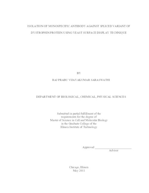 ISOLATION OF MONOSPECIFIC ANTIBODY AGAINST SPLICED VARIANT OF DYSTROPHIN PROTEIN USING YEAST SURFACE DISPLAY TECHNIQUE
